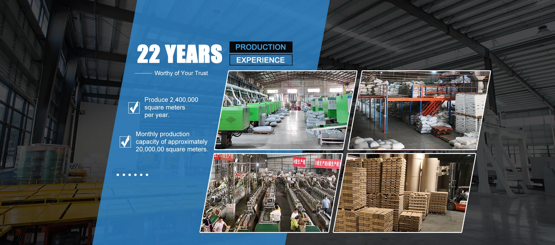 Cu peste 166,50 de metri pătrați de spațiu în fabrică și o capacitate de producție lunară de aproximativ 20.000.00 de metri pătrați, putem produce 2.400.000 de metri pătrați pe an.